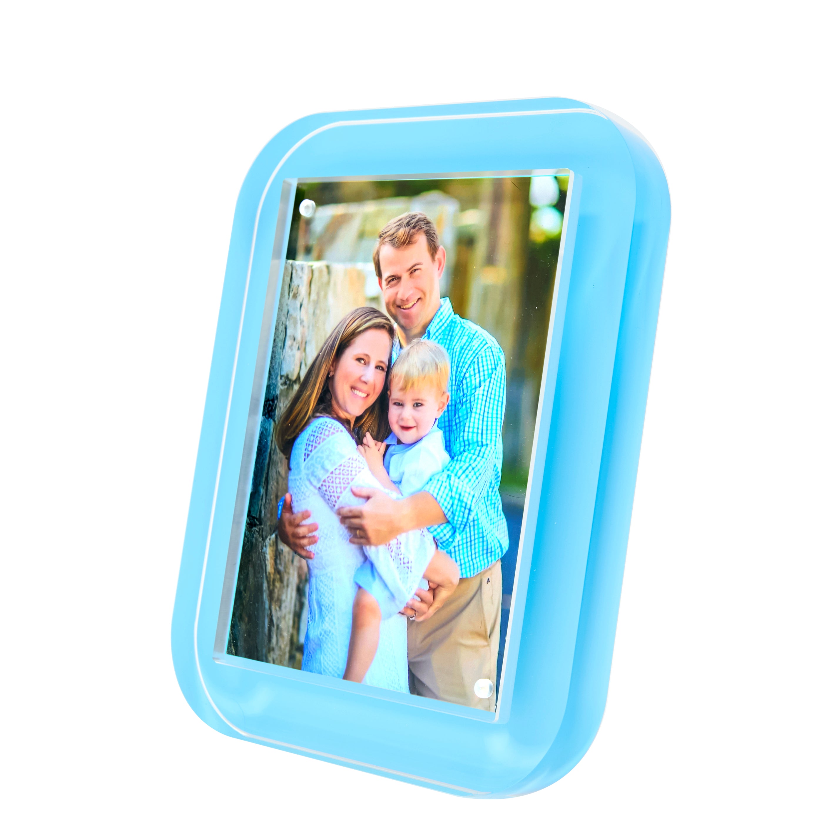Bring bold style to your photos with our new 5 x 7 pastel blue POP Frame. Crafted from luxuriously thick 1-inch acrylic, this unique frame is both sleek and modern.